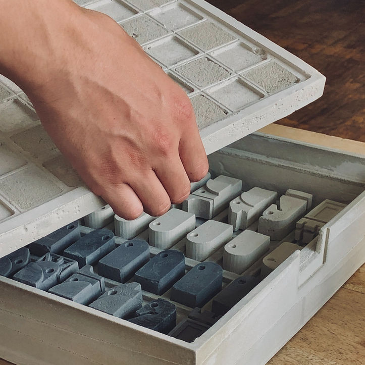 The Concrete Brutalist chess set is a handmade product that includes 16 natural grey concrete pieces,16 dark grey concrete pieces, and a 1-inch thick concrete board.